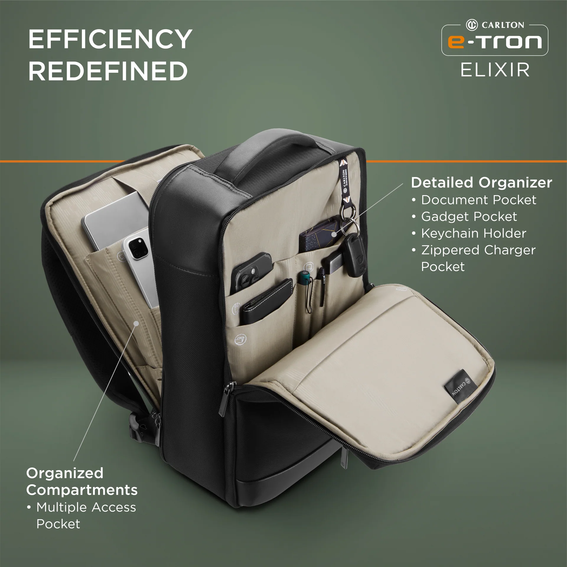 E-FFICIENCY REDEFINED: Streamline your day with intelligently organized compartments, multiple access points, and dedicated pockets for documents, gadgets, and essentials.