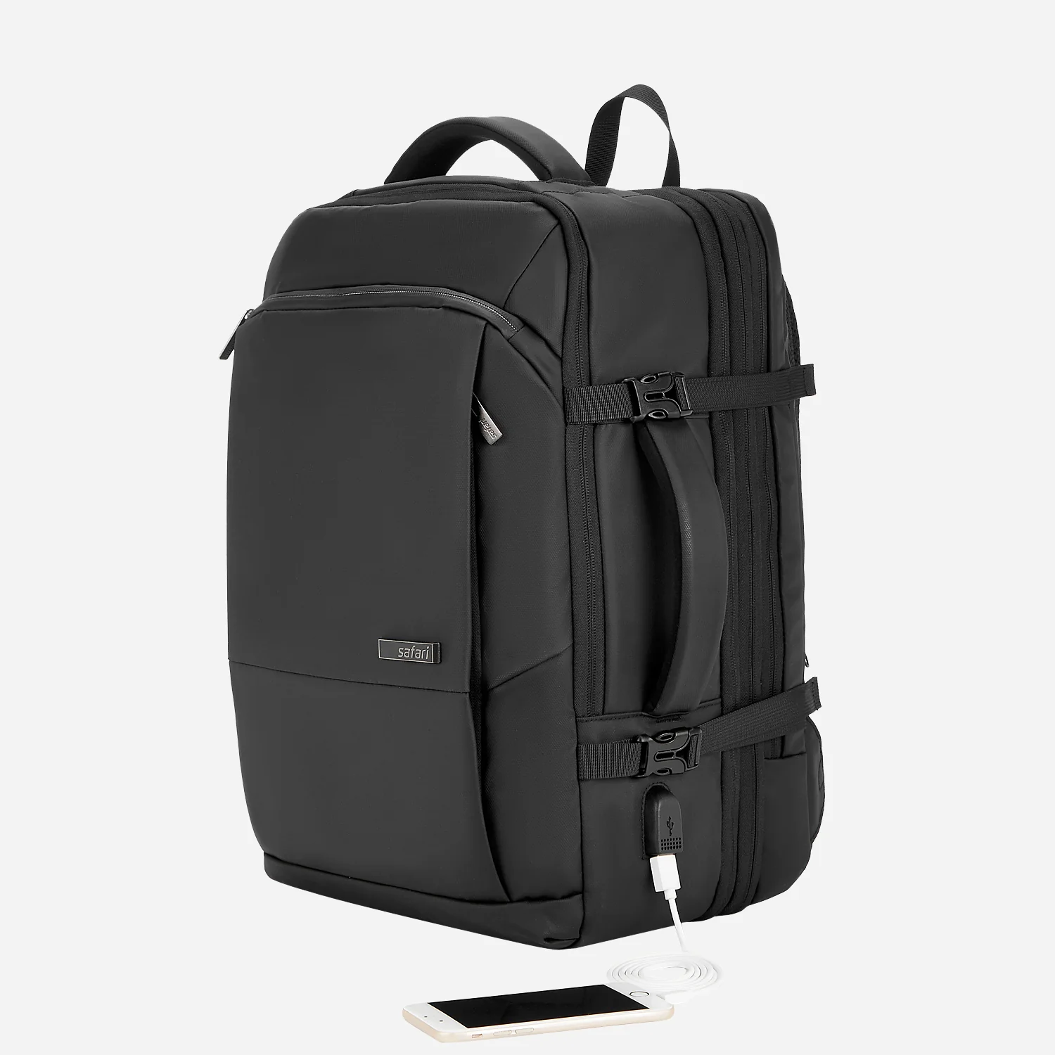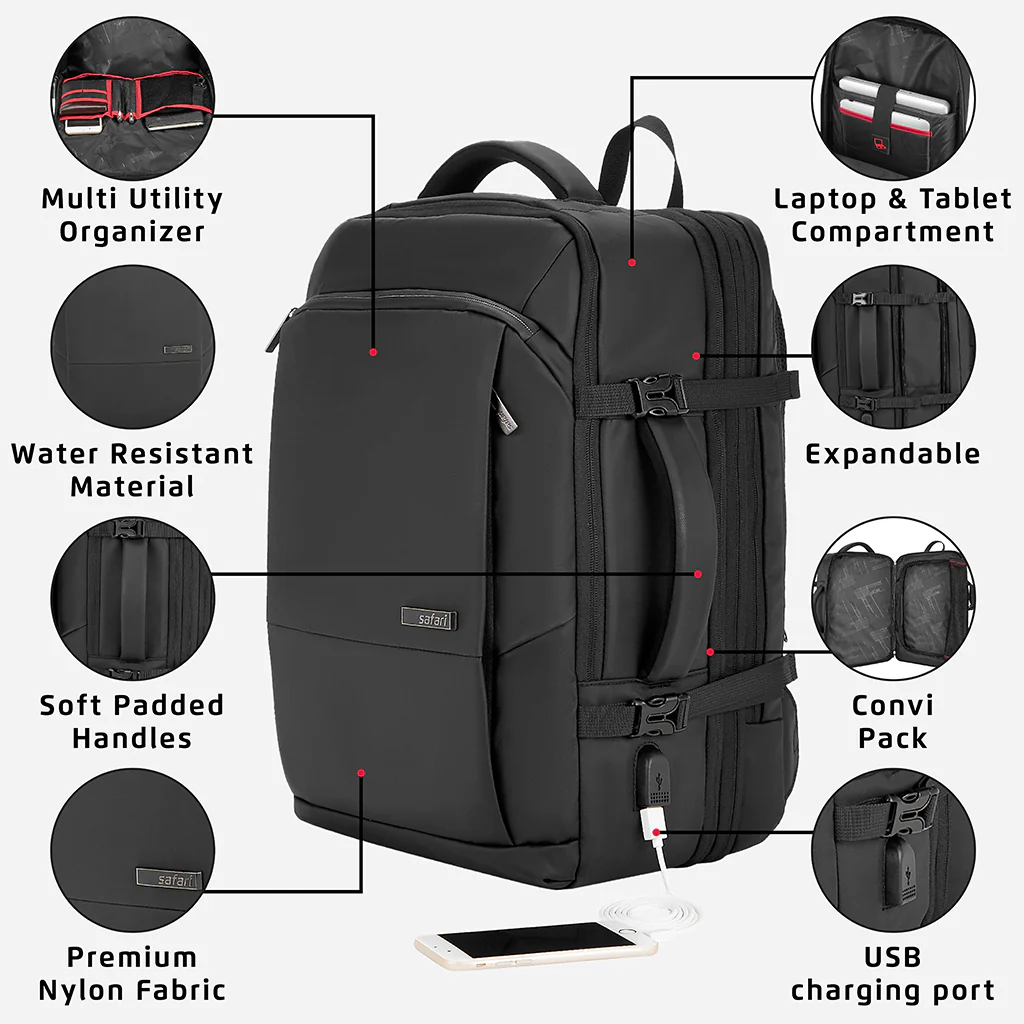 Safari Zeus 33L Black Formal Backpack Suitcase with 2 Way Handle and Compression Straps