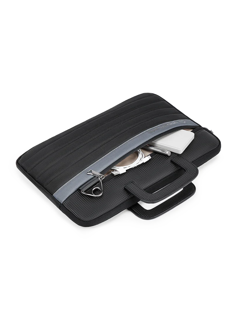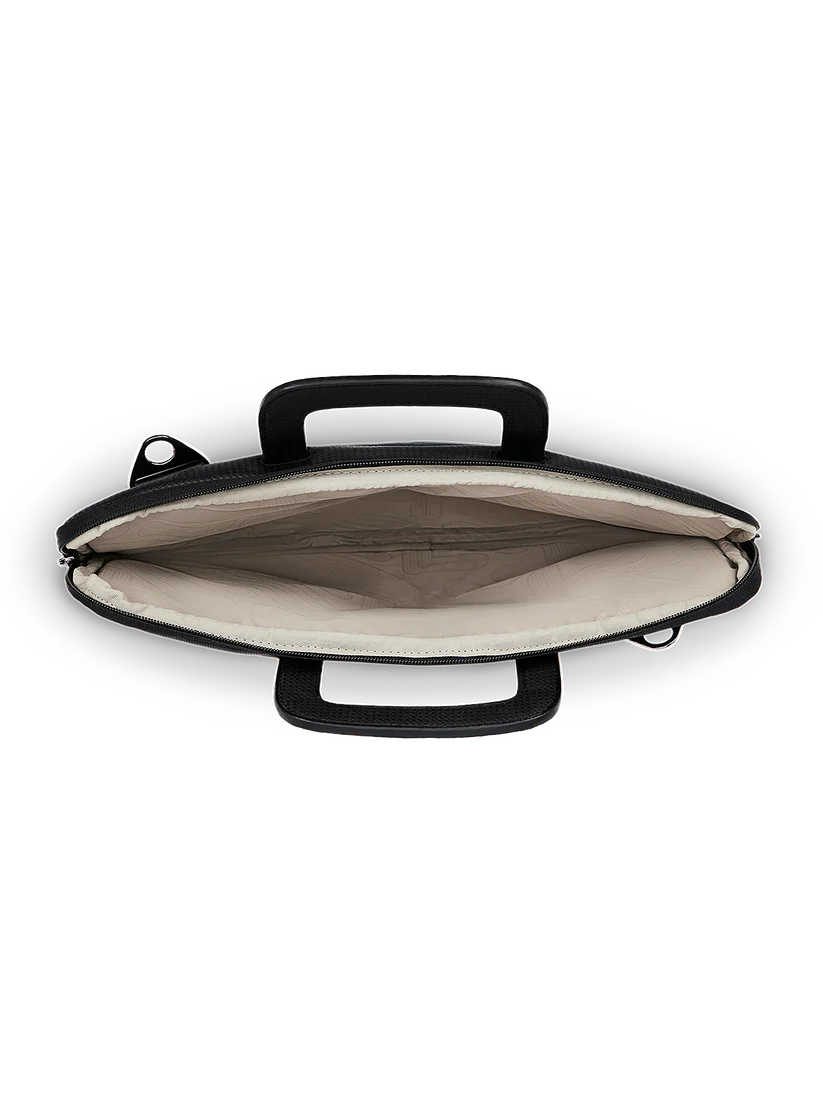Crafted with a multi-textured quilted exterior that combines elegance with durability for a modern, professional look. Soft padded interior safeguards your laptop from scratches, bumps, and daily wear.